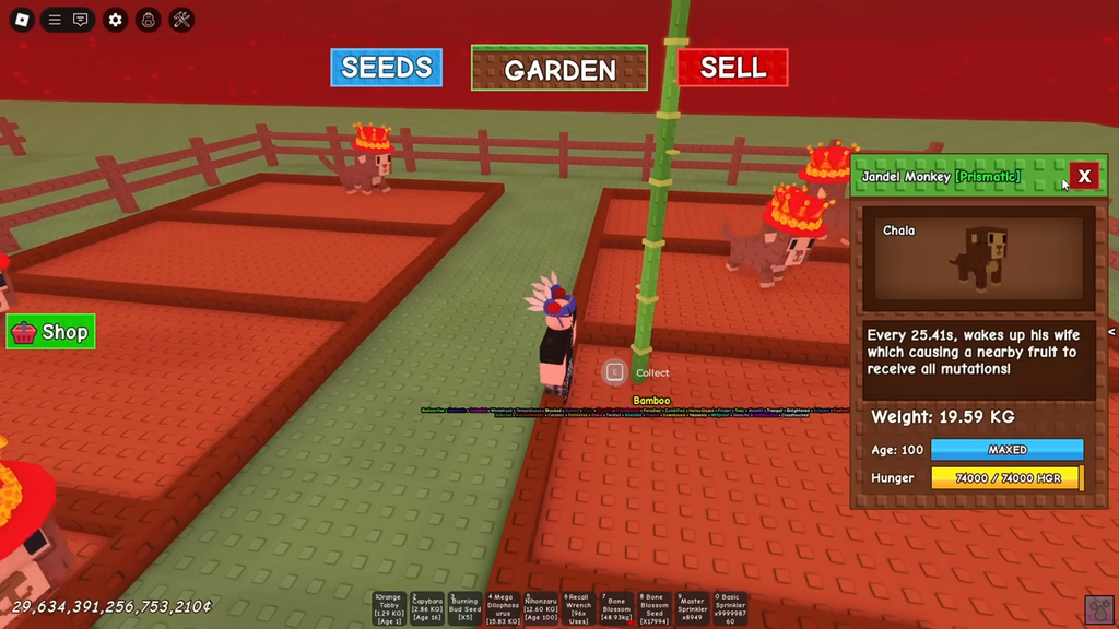 Der Jandel Monkey ist vielleicht das am meisten überwältigte Haustier, das jemals hinzugefügt wurde, um einen Garten zu wachsen. Mit der Kraft, alle 25 Sekunden lang jede einzelne Mutation auf eine einzelne Pflanze zu schlagen, hat dieser digitale Begleiter die Kraft, sogar einen Bambus in einen Frankenstein von Früchten zu verwandeln.